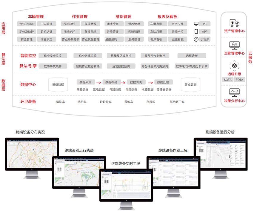 實現了車輛數據的全面互通和全車OTA能力,通過底盤和上裝的協同控制,精確采集作業數據,推進車輛作業和平臺監控的數字化精細化管理